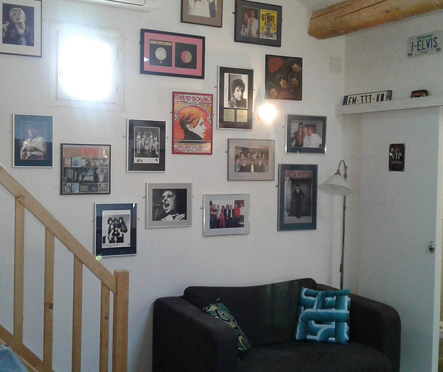 Just like the main house, Le Loft is a shrine to so many legends of popular music, and the duplex has its own movie and CD collection to enjoy away from the rest of the villa. On the walls between the home cinema screen and the bed above the wine vat are framed mementos of David Bowie, The Who, Leonard Cohen, The Sex Pistols and more, spanning half a century of contemporary music culture.