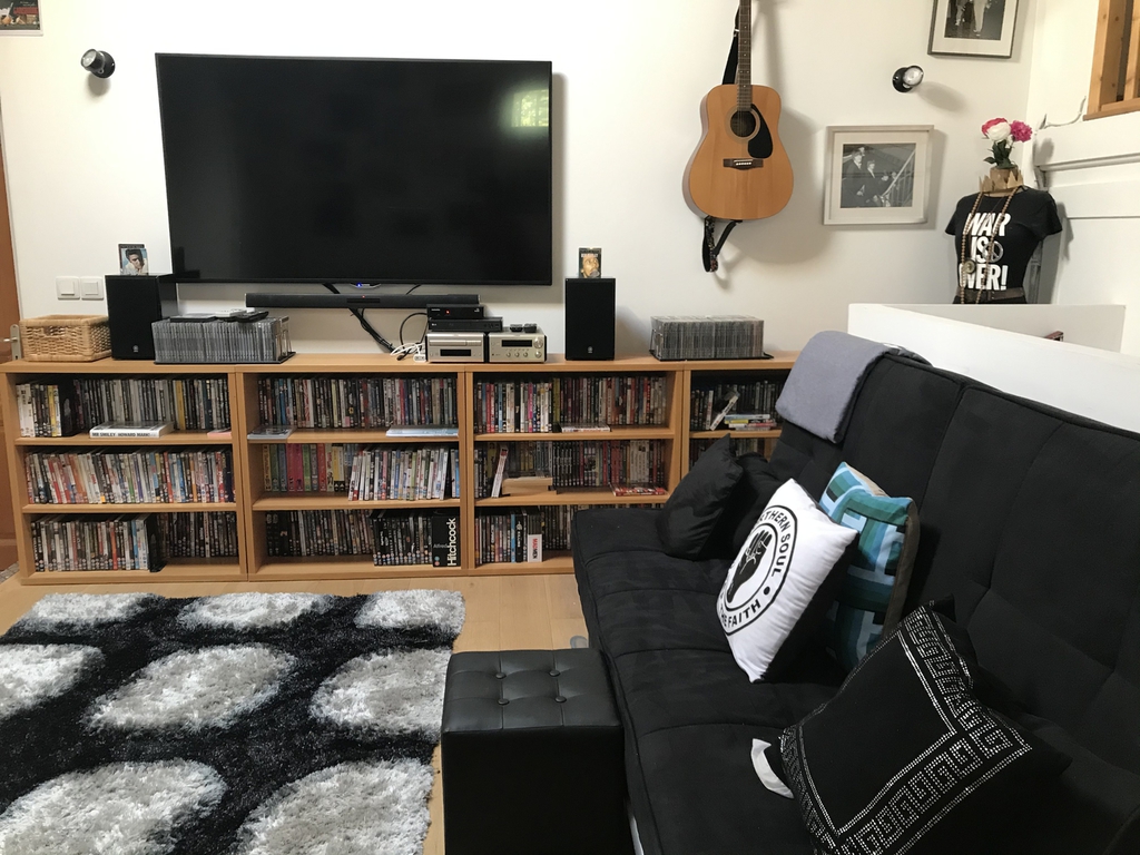 You may choose your own soundtrack, by connecting your phone or music player to the hifi or simply browse the owner's eclectic tastes.