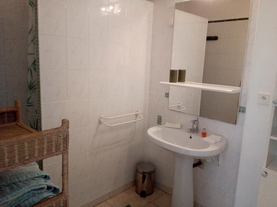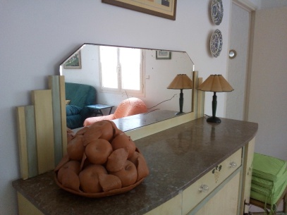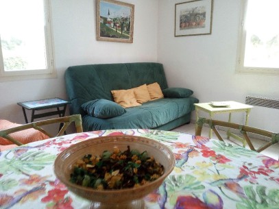 The good sized salon sejour has windows opening out to the east-facing patio and south to the fig tree that lends its name to the ground-floor apartment.