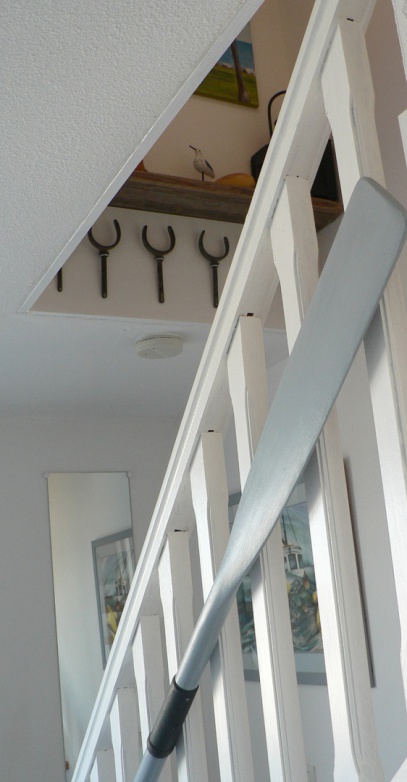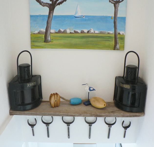 And the house is just across the way from the bustling boatyard where the hulls of voiliers are painted in the summer sunshine.