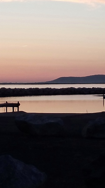 Look to your left and you can see the masts of boats bobbing in the water against the undulating silhouttes of the lagoon ports of Sete, Balaruc and Bouzigues.