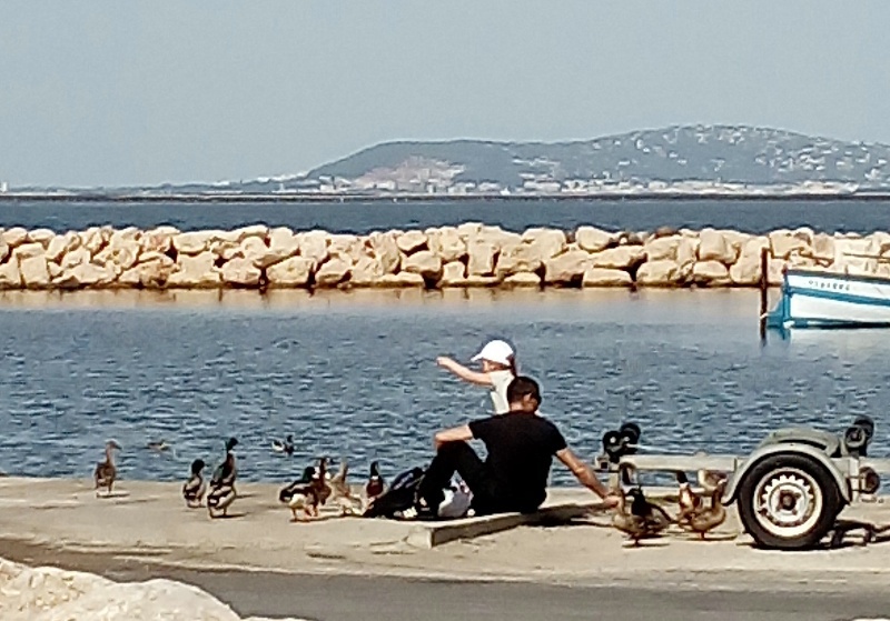 This is a genuine working port with the sleepy backdrop of fishermen and sailors preparing their boats and nets. Beyond them the distinctive outline of the the mount of Sete looming across the bay.