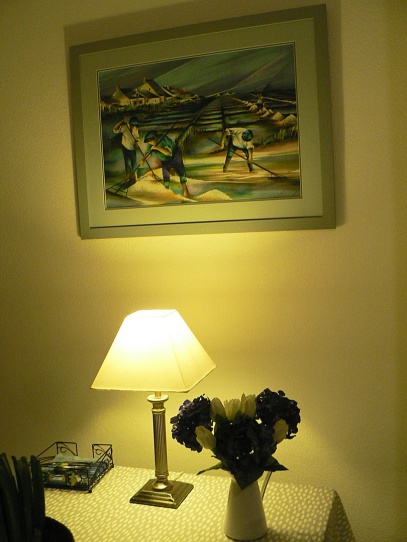 Or any night, keep an eye on the great outdoors through the french windos, and lay the table for dinner under the whisper of a gently spinning ceiling fan...