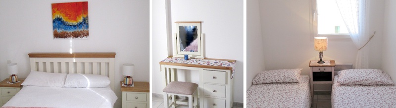 The master bedroom with its double bed and air-conditioning and a twin room next door, with electric fan. Newly refitted shower room and WC.