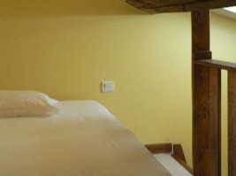double bed, exposed beams and Velux window.